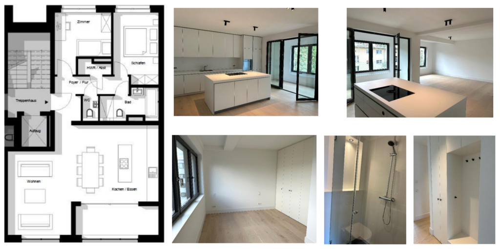 - Offene Wohn-Ess-Kochbereiche teilweise mit einer exklusiven maßgefertigten Einbauküche